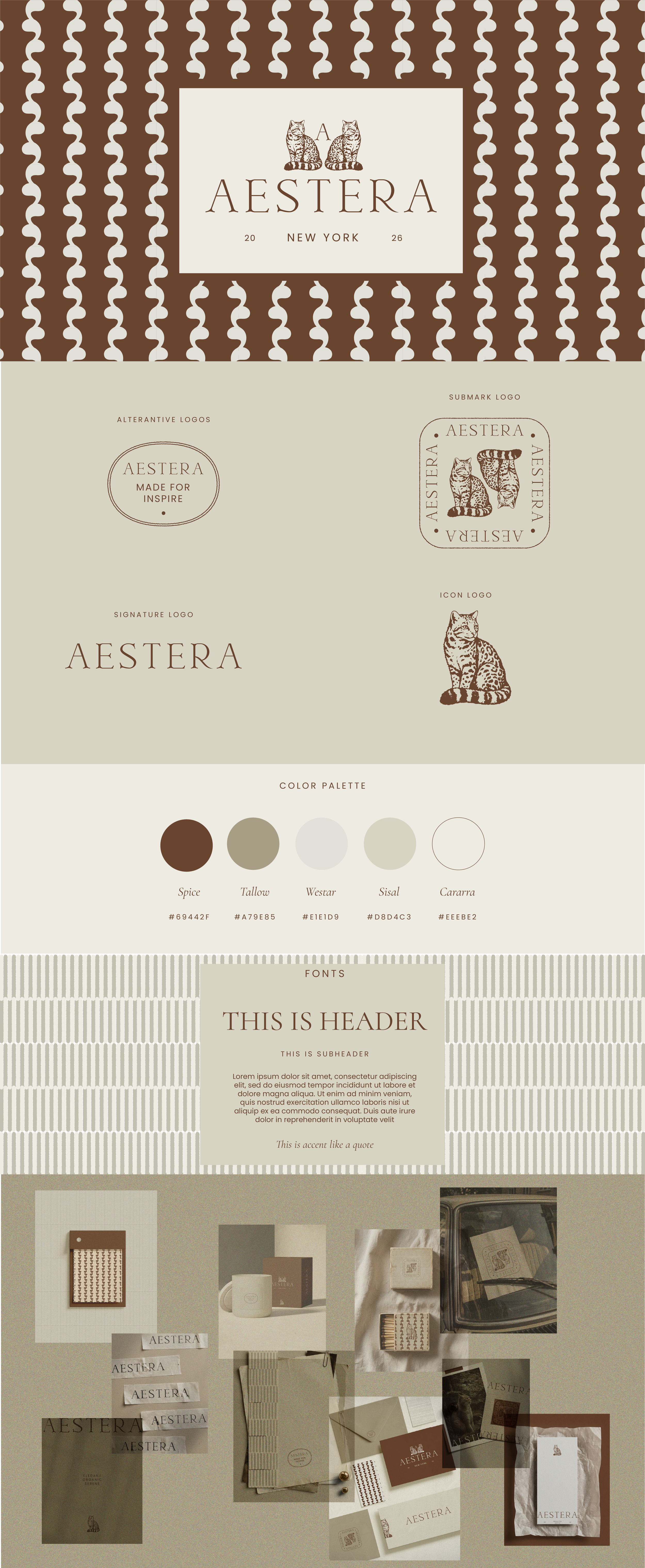 Aestera is an organic and refined brand identity rooted in quiet elegance, craftsmanship, and timeless design. Conceived as a world of warmth and subtle sophistication, the brand blends natural textures with vintage-inspired details to create a sense of calm, authenticity, and understated luxury.